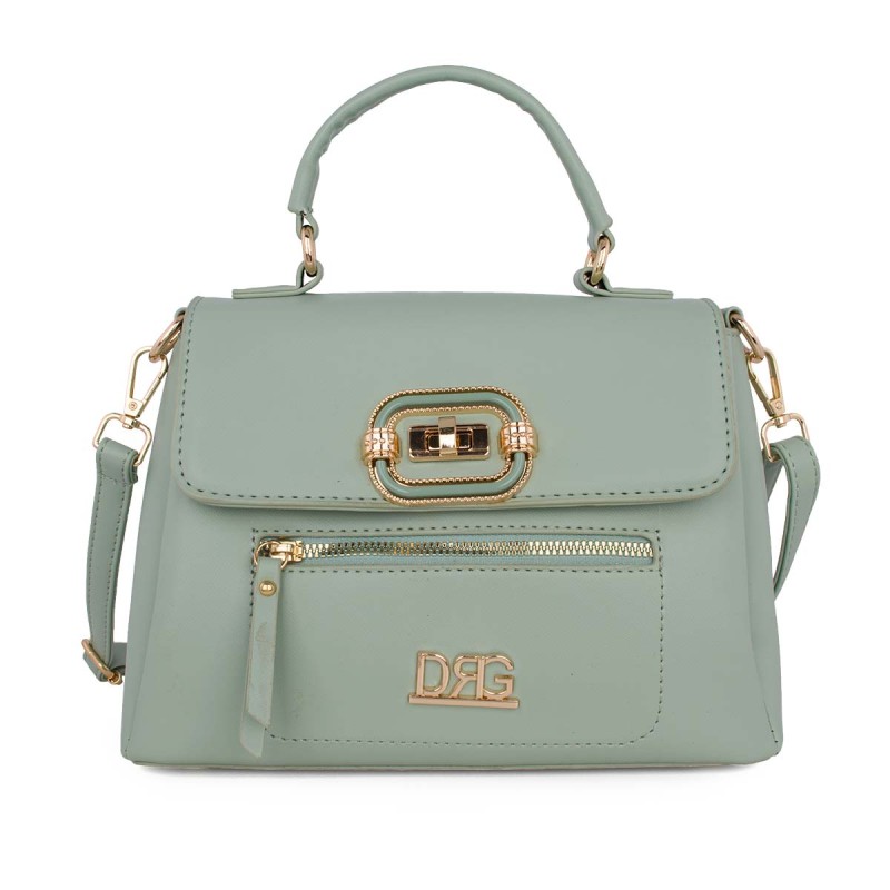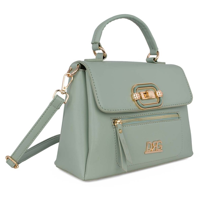 Women's Crossbody Bag, sage. Eco-leather. It features 3 separate internal compartments, 1 internal zip pocket, and 1 external zip pocket on the front. Closes and secures with a metal fastening and zipper. Adjustable, detachable crossbody strap. Dimensions: H 20cm, W 26cm, D 12cm "Designed in Greece exclusively by De Raggi designers".